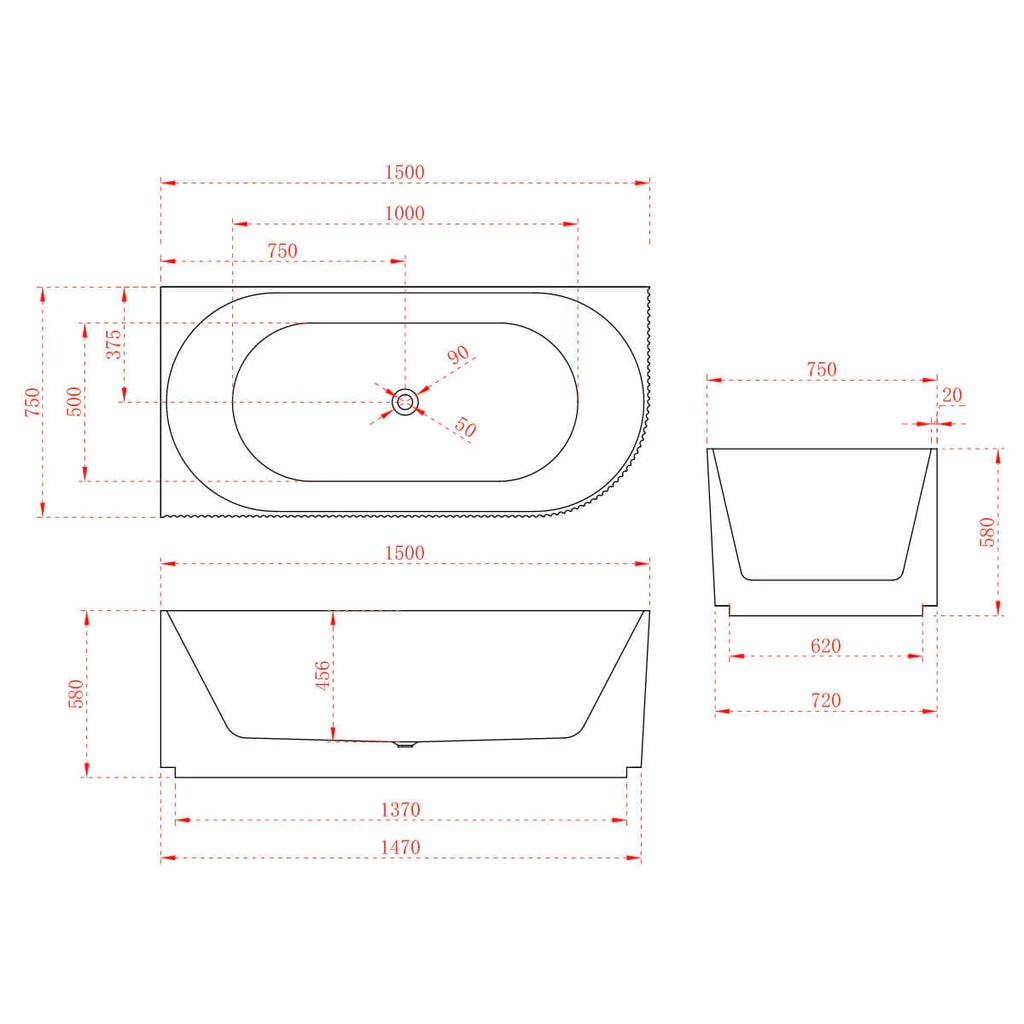 - Ample space (1500x750x580) for a comfortable and luxurious bathing experience