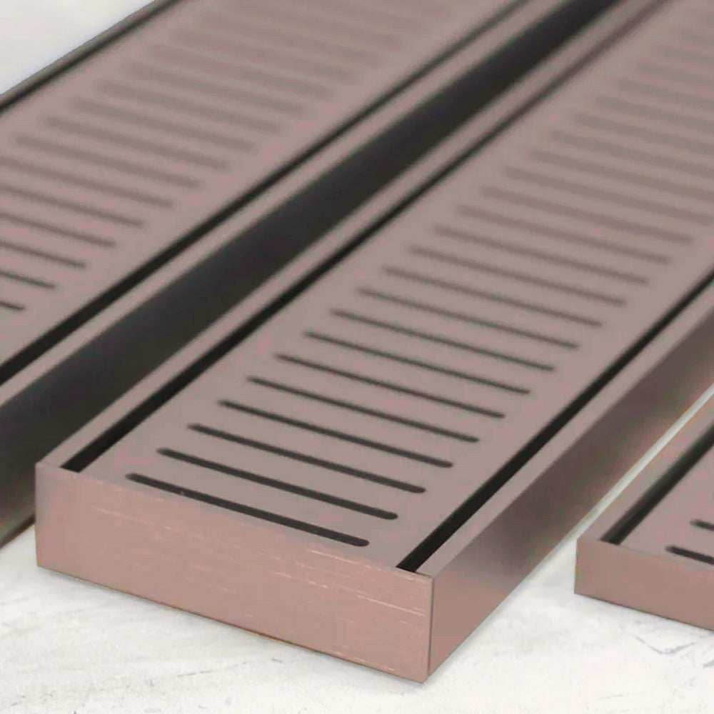 Aluminium Slimline Shower Grate Drain Brush Bronze 300-3000x100x21mm