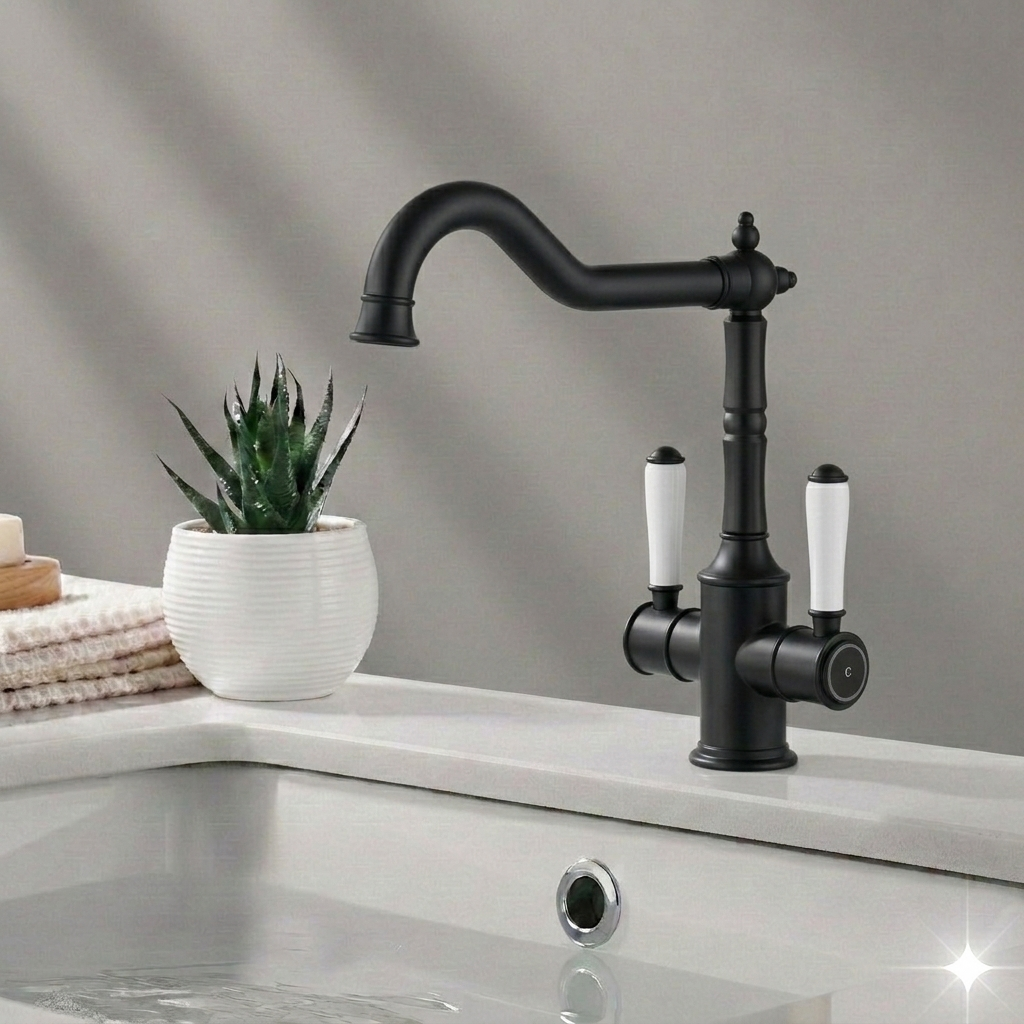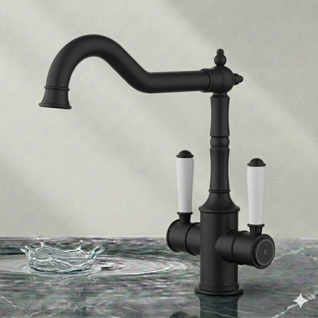 Clasico Twin Handle Gooseneck Sink Mixer Ceramic Handle HYB868-105A-MB