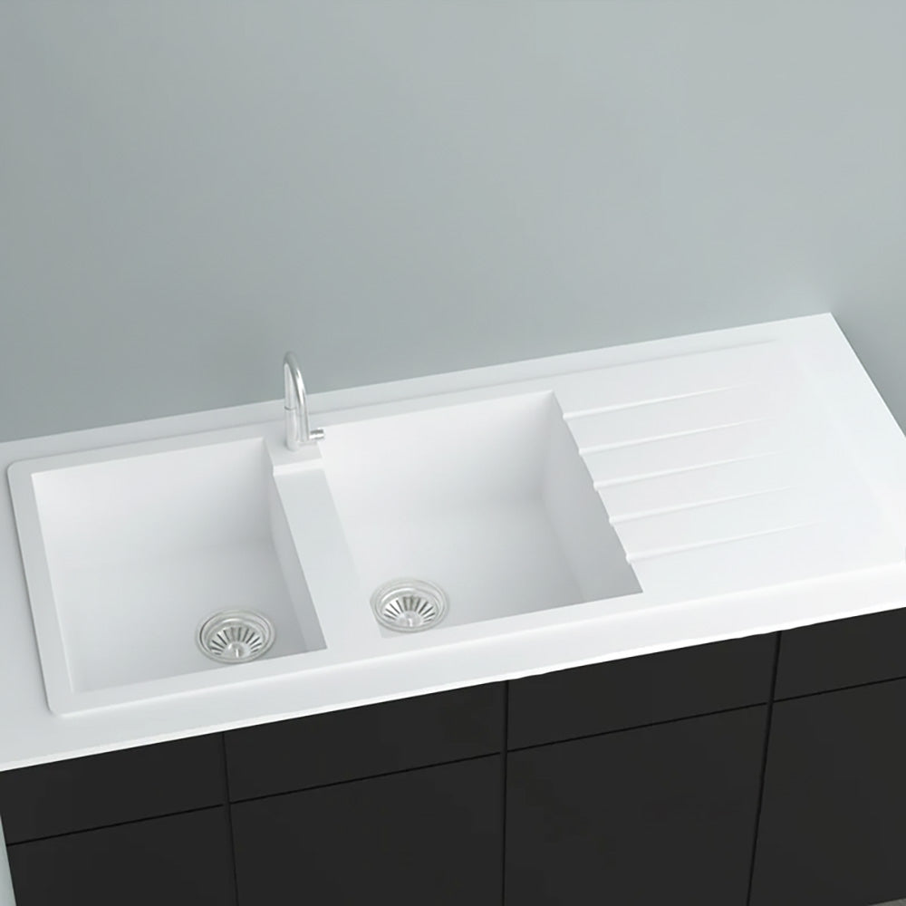 ISTONE Double Bowl Drainer Kitchen Sink D1160-WH
