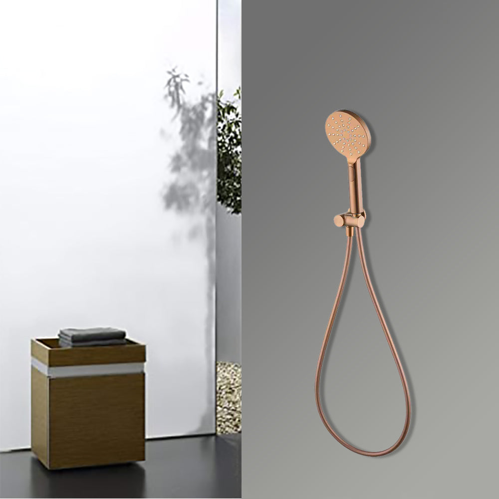 This Otus wall-mounted hand shower on the bracket is made up of solid brass and holds your hand shower in place. Made of high-quality stainless steel and manufactured with brush copper coating that is extremely long-lasting, corrosion-resistant, and rust-free to give your bathroom a sleek and modern look. Designed to hold the shower head in place and can be adjusted to work for every user. Provided a steel flexible hose with a working pressure of 150-500 kPa.