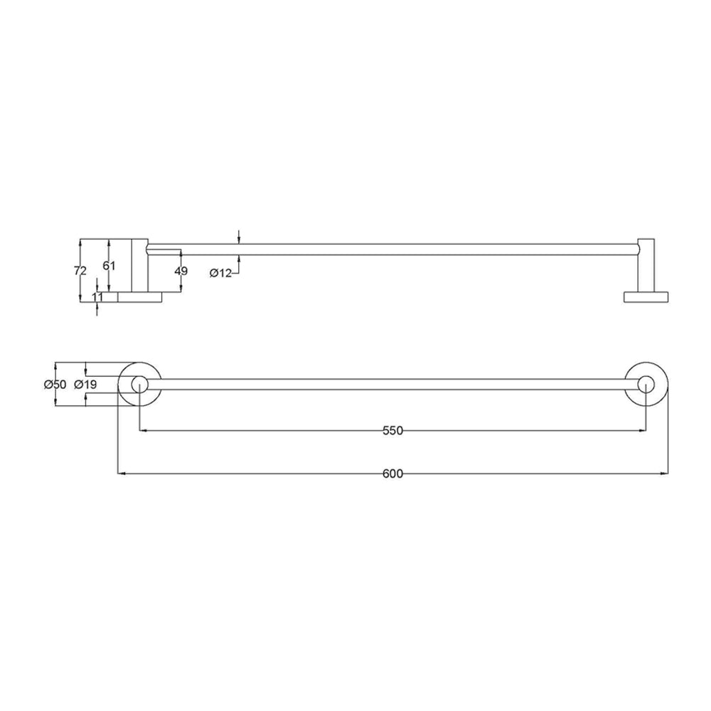 Otus Single Towel Rail 600mm Chrome 4502-600-CH