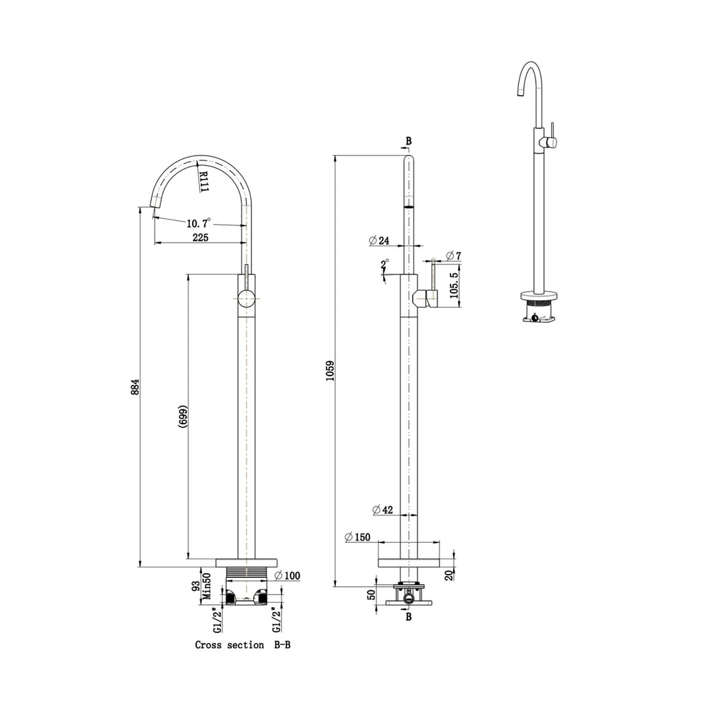 With its simple design and easy water management, the Otus Slimline Freestanding Bath Mixer Chrome SSBF2070-CH is an eye-catching focal point for contemporary bathrooms. Its sturdy stainless steel structure ensures long-lasting function and style, making it perfect for use with freestanding baths. Its floor-mounted form adds an opulent touch to roomy layouts. For peace of mind, it comes with a 7-year manufacturer's warranty and is available in Chrome, Matte Black, Brushed Nickel, Stainless Steel, Gun Metal, Brushed Copper, and Brushed Gold.
